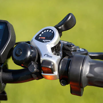 It has a Shimano Altus derailleur with a 7-speed cassette and Shimano SIS Index thumb shifter up front. Speed can be easily adjusted with the pedal-assist system.